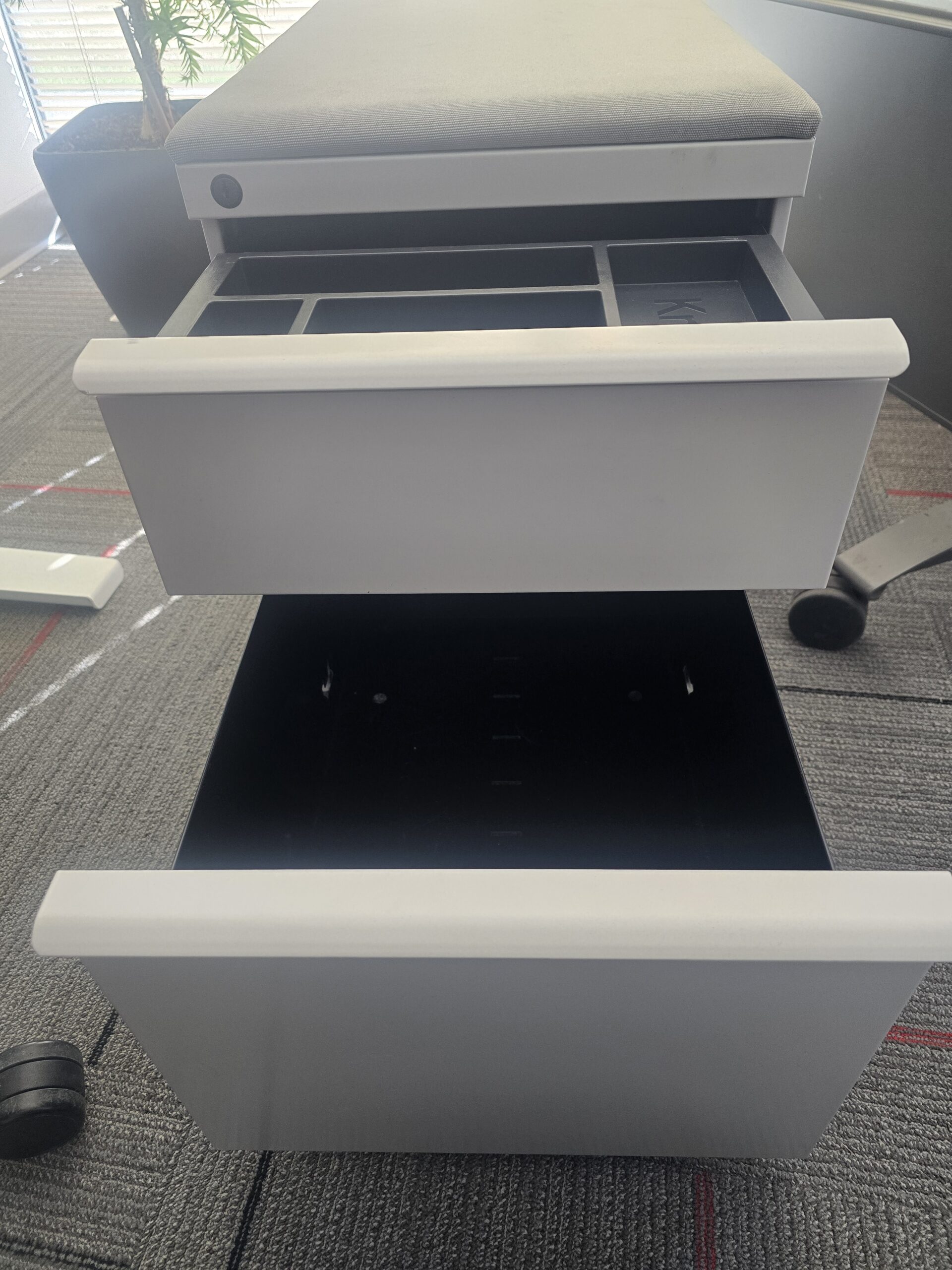Knoll 2-Drawer Pedestal Cabinet – Lt. Grey Cabinet – Taupe Pad – $75.00 ea.